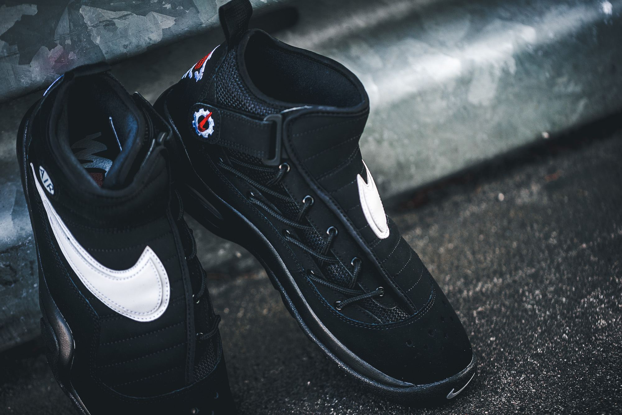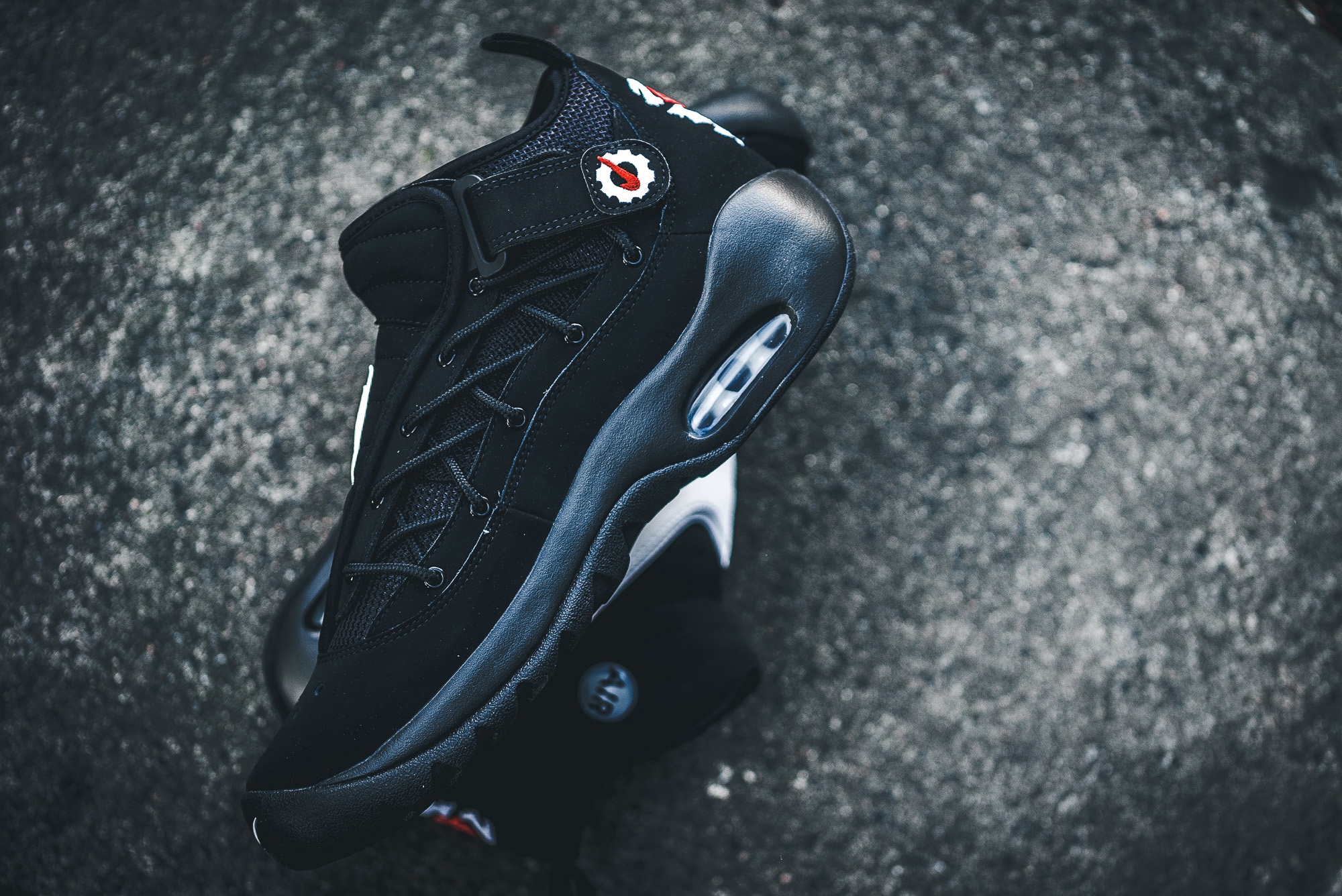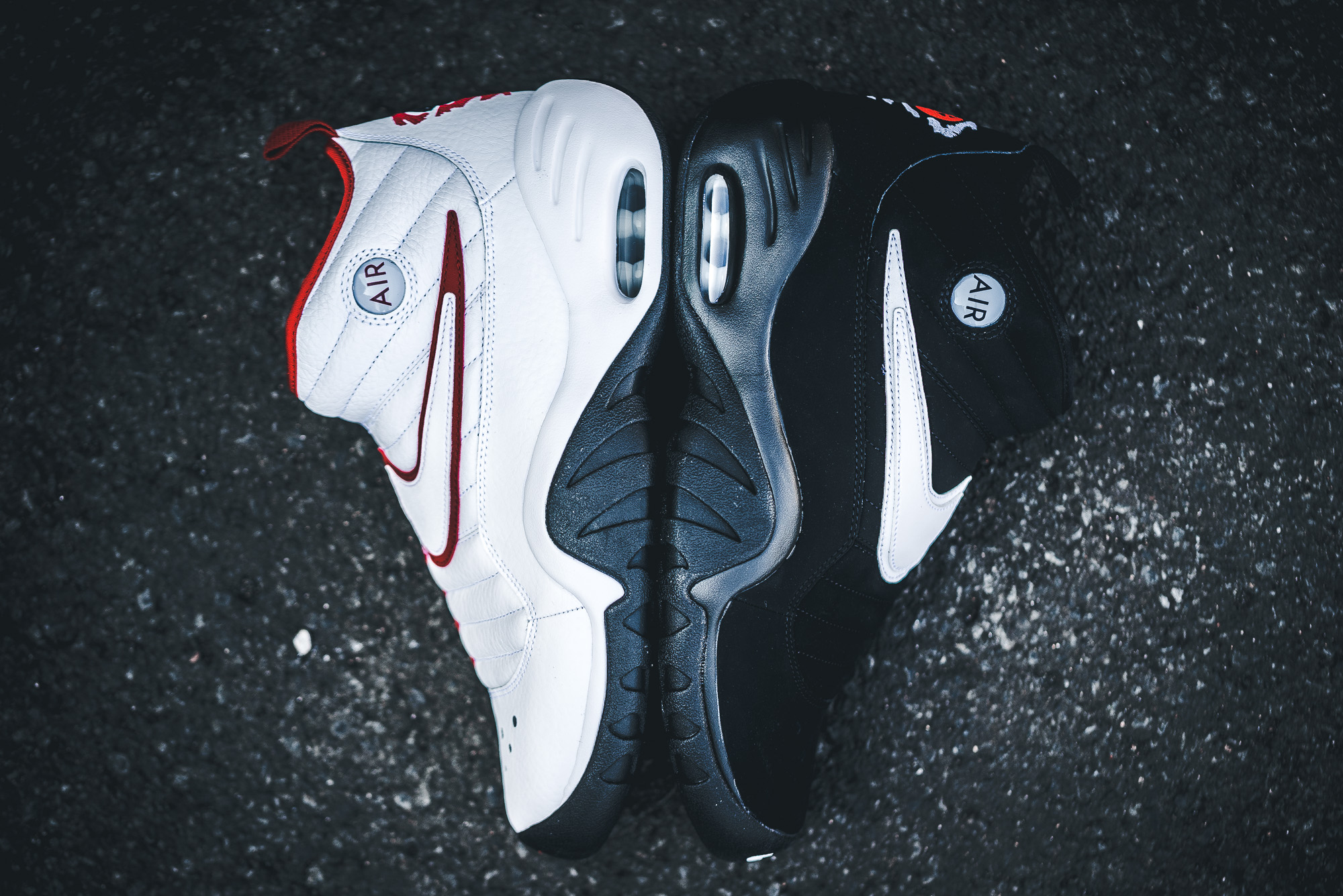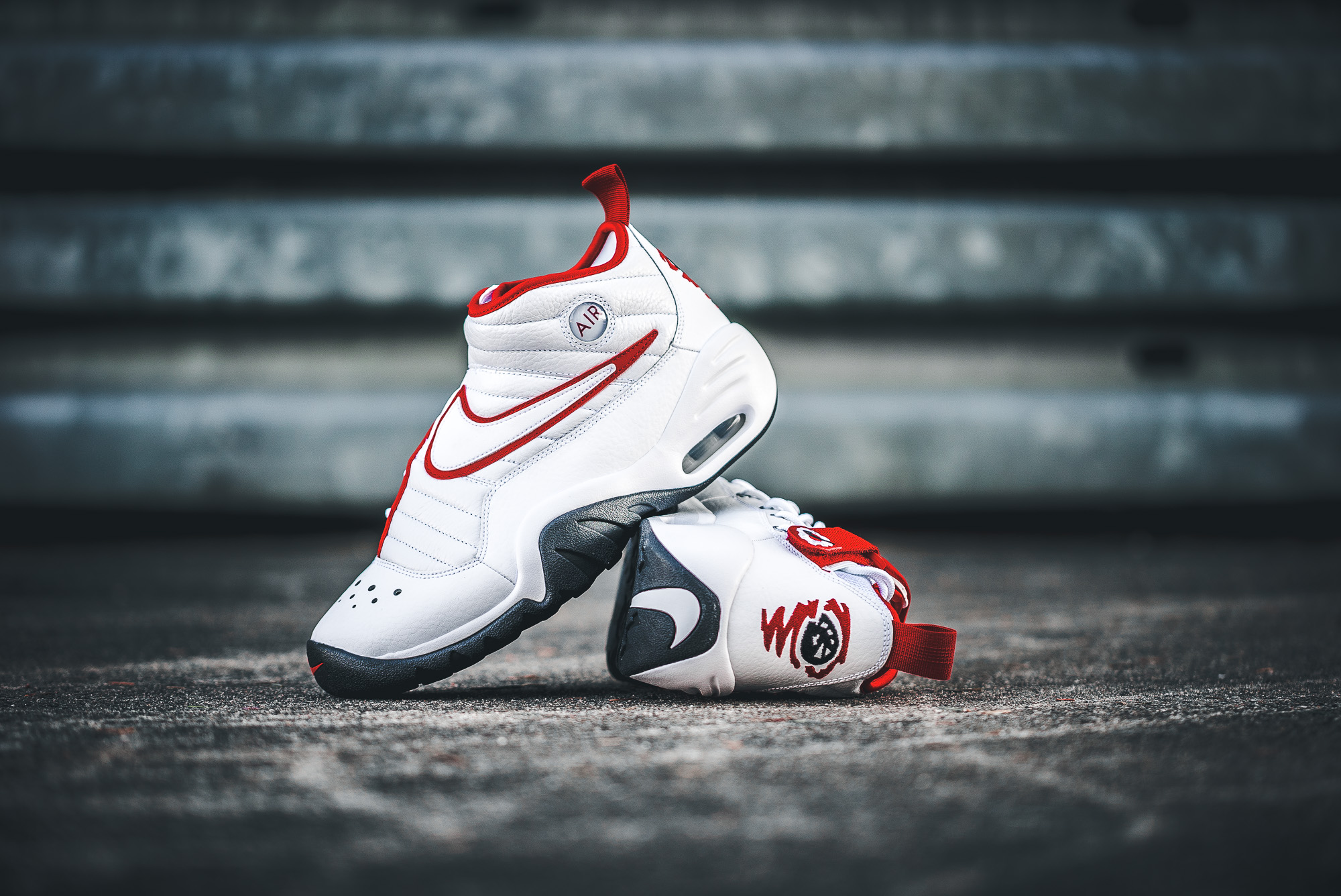 Für den weiß/roten Colorway ließ sich Nike von den Vereinsfarben der Chicago Bulls inspirieren, mit denen Rodman von 1995 bis 1998 das »three-peat« holte. Als wäre er nie von der Bildfläche verschwunden, überzeugt der Sneaker mit einem weißen Leder-Upper, roten Elementen an Swoosh und Lining, sowie der schwarzen Sohle. Schwarz ist auch das Upper des zweiten Colorways, welcher zudem mit einem weißen Swoosh besticht.