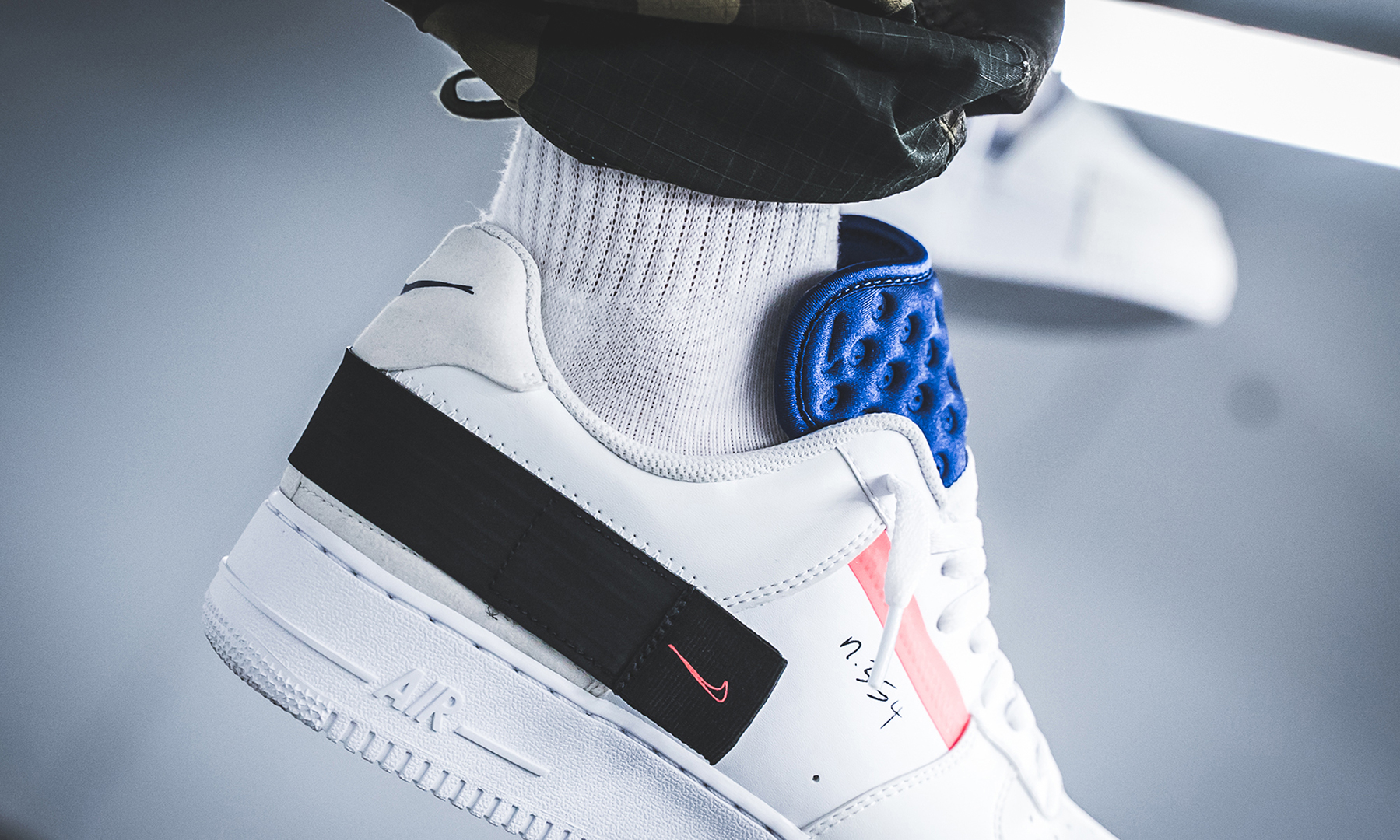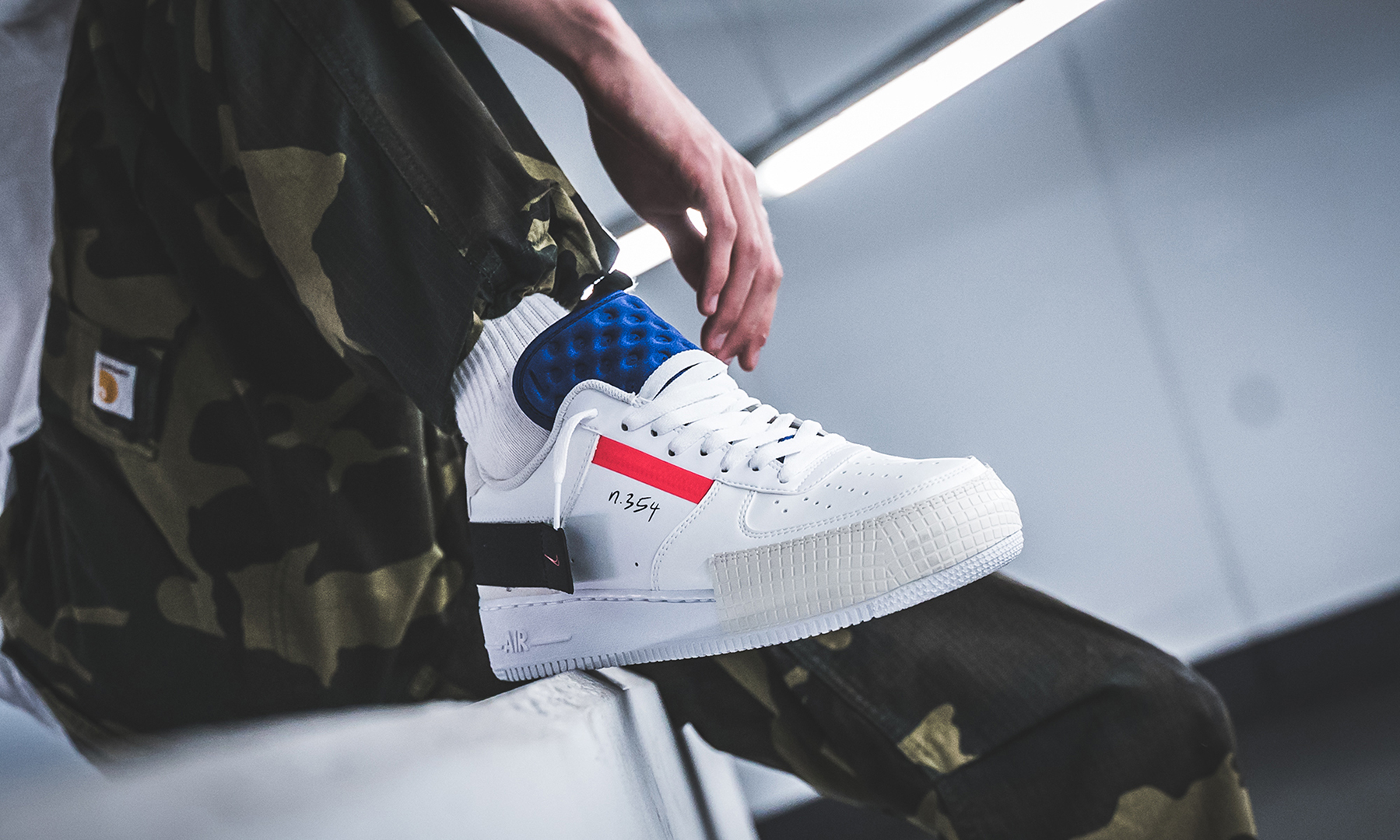 Es ist kein Wunder, dass der Air Force 1 als Urgestein der Nike-Klassiker auch in der neuen experimentellen »N. 354«-Reihe einen Platz findet und einen völlig neues Design erhält. Der Nike Air Force Type »N. 354« erhält durch die dekonstruierten Details eine »Handmade«-Ästhetik und besticht vor allem durch seine gepolsterte Zunge in Royalblau, dem verstärkten Vorderfuß, den transparenten Materialien und dem auffälligen Verschluss an der Ferse. Abgerundet wird der Look durch das »N. 354«-Branding am Mittelfuß.