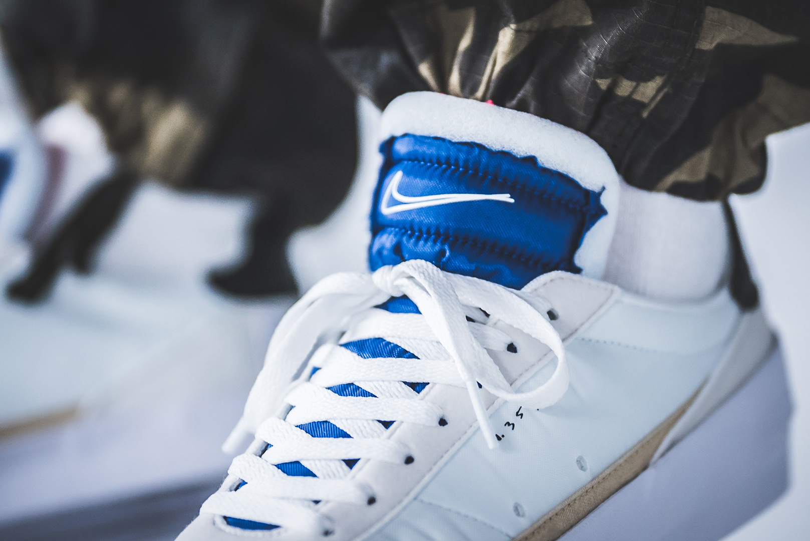 Auch das zweite Teil der Kollektion besticht durch seinen innovativen Look. Beim Nike Drop Type LX »N. 354« dominiert ein Materialmix das weiße Uppe, das mit Bleistift-Skizzen vervollständigt wurde. Die neue Silhouette besticht außerdem durch eine gepolsterte Zunge in Royalblau, dem verstärkten Vorderfuß, rotem Innenfutter und schwarzen Leder-Details an den Fersen.