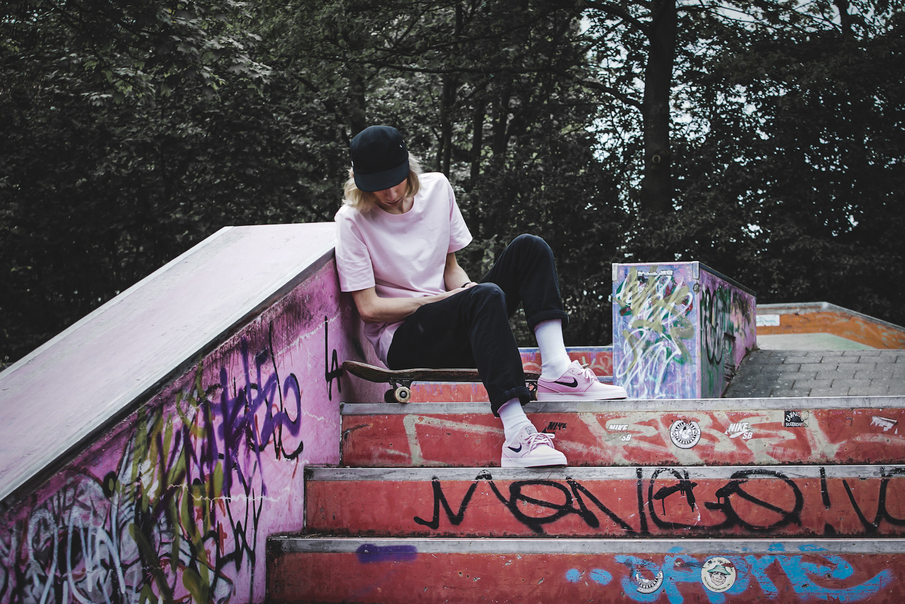 Unser Lukas aus dem Customer Service hat sich die schönen Teile mal übergeworfen und gekonnt zum Skaten ausgeführt. Wie man sieht, gefallen sie dem Lukas schonmal sehr gut und wenn ihr auch Lust auf die »Pink Motel Collection« habt, findet ihr sie ab sofort in unserem Shop: