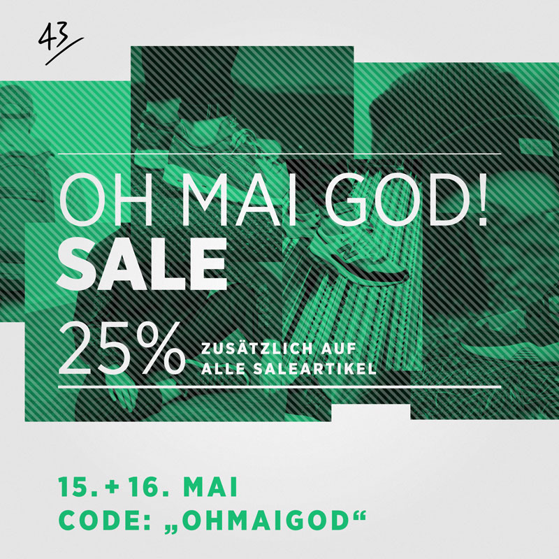 Am langen Pfingstwochenende, am 15. & 16. Mai, gibt es mit dem Rabattcode »OHMAIGOD« zusätzlich 25% auf alle Artikel in unserer Sale-Kategorie.