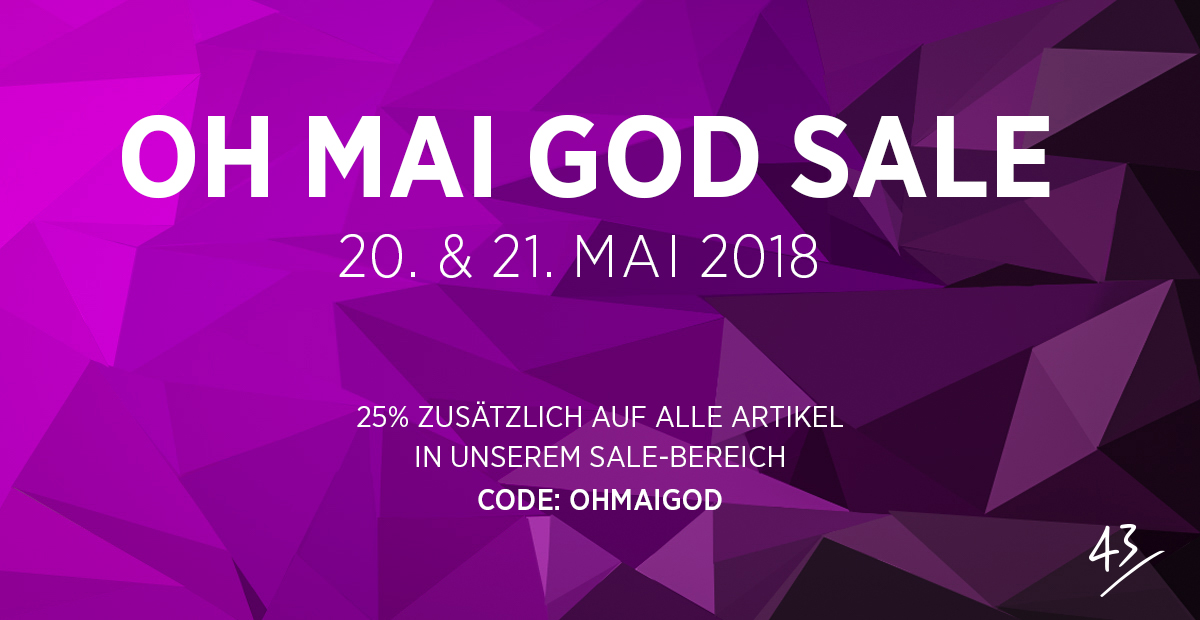 25% zusätzlichen Rabatt auf alle Sale-Produkte am 20. & 21. Mai 2018 mit dem Rabattcode »OHMAIGOD«. 25% additional discount on all sale items with code »OHMAIGOD« on May 20th & 21st.