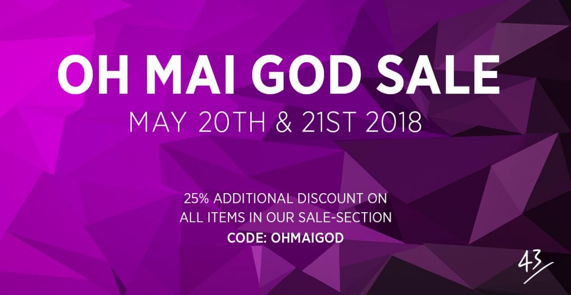 [ENGLISH TRANSLATION BELOW] Am 20. & 21 Mai 2018 erhaltet ihr 48 Stunden lang mit dem Rabattcode »OHMAIGOD« zusätzlich 25% auf alle bereits reduzierten Artikel in unserem SALE-Bereich. Das sind teilweise bis zu 65% Rabatt auf den Originalpreis!