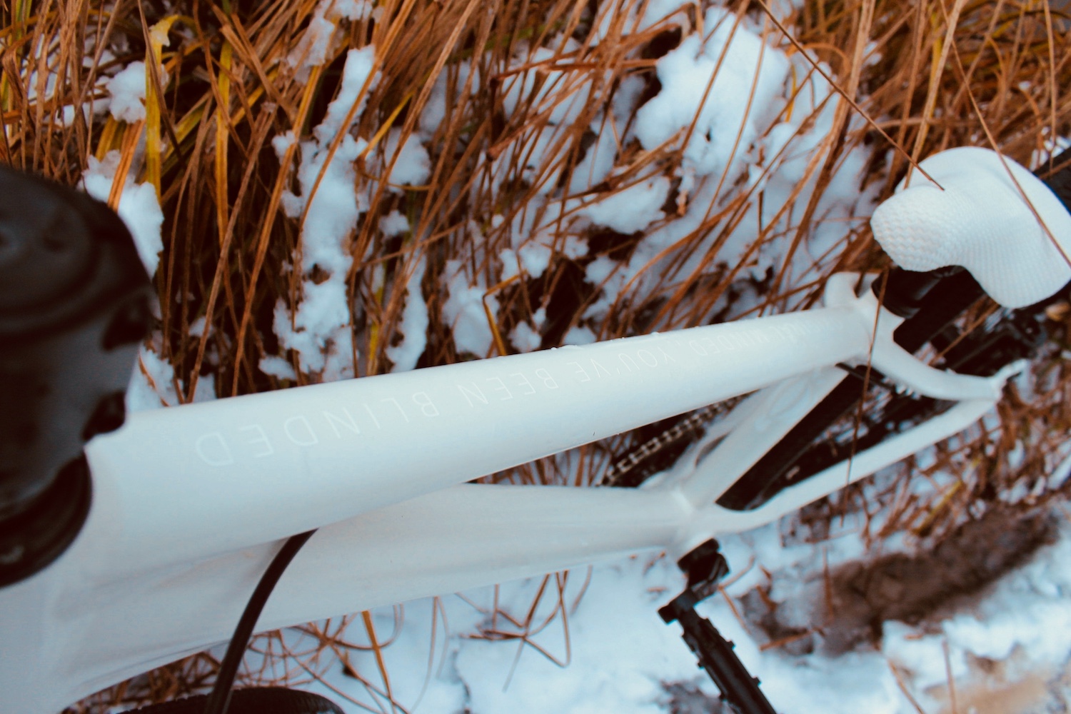 Das Gravity Stitched 360° wurde dafür im typischen OPM-Style clean und weiß gehalten und begeistert optisch nicht nur die Fahrrad-Junkies. Ohne Euch übermäßig mit technischen Details zu langweilen, können wir sagen, dass das Stitched 360° mit dem Rock Shox Pike DJ, dem Tapered Steerer und den Truvativ-Descendant-Kurbeln alles mitbringt, was man für einen ordentlichen »Slopstyle-Dirttrack« benötigt. Der bombenfeste Canyon G5 Vorbau und Lenker sorgen für beste Kontrolle und verschmerzen selbst böse Patzer. Das Gewicht des kompakten Dirt Bikes beträgt rund 11 kg (Größe L).