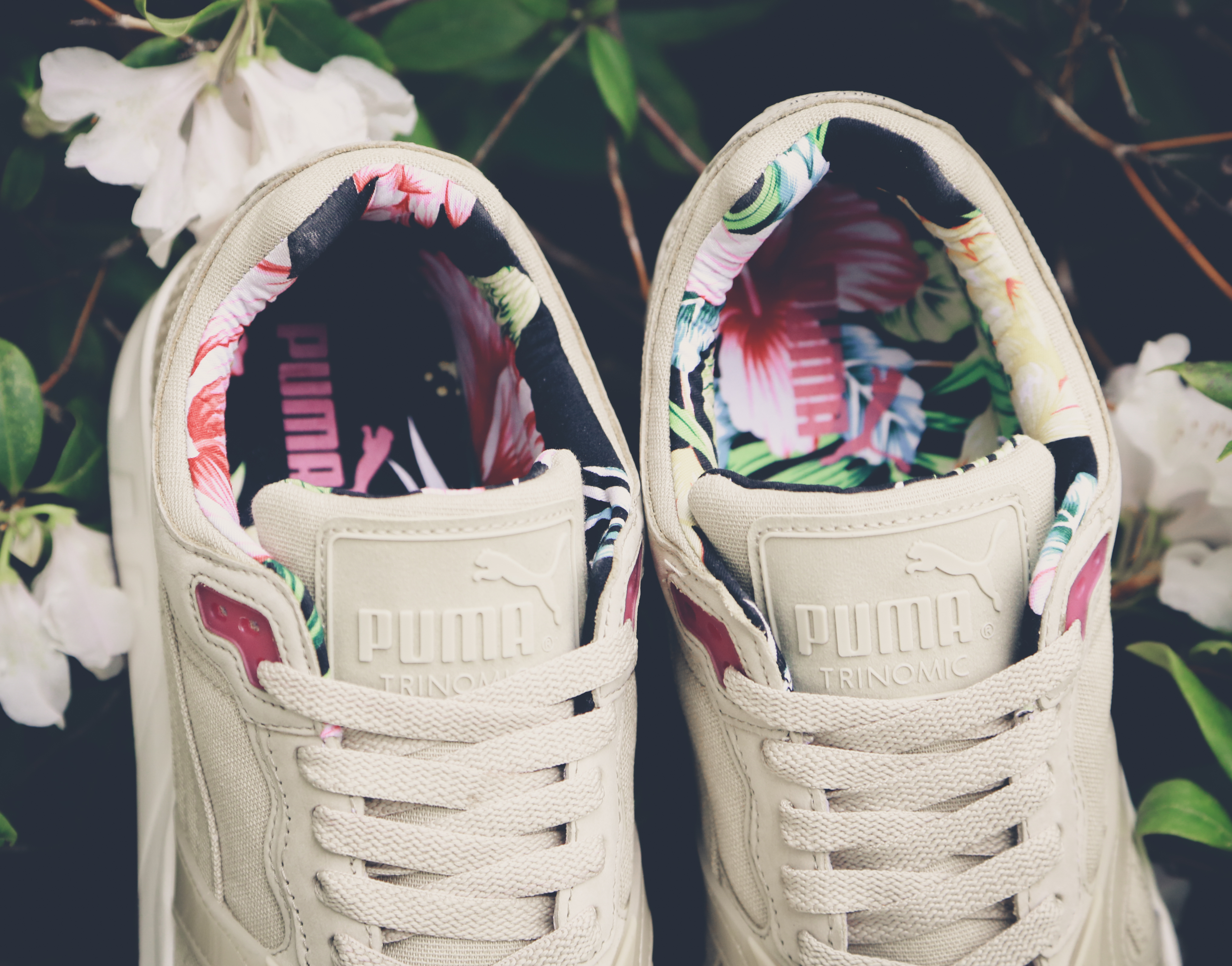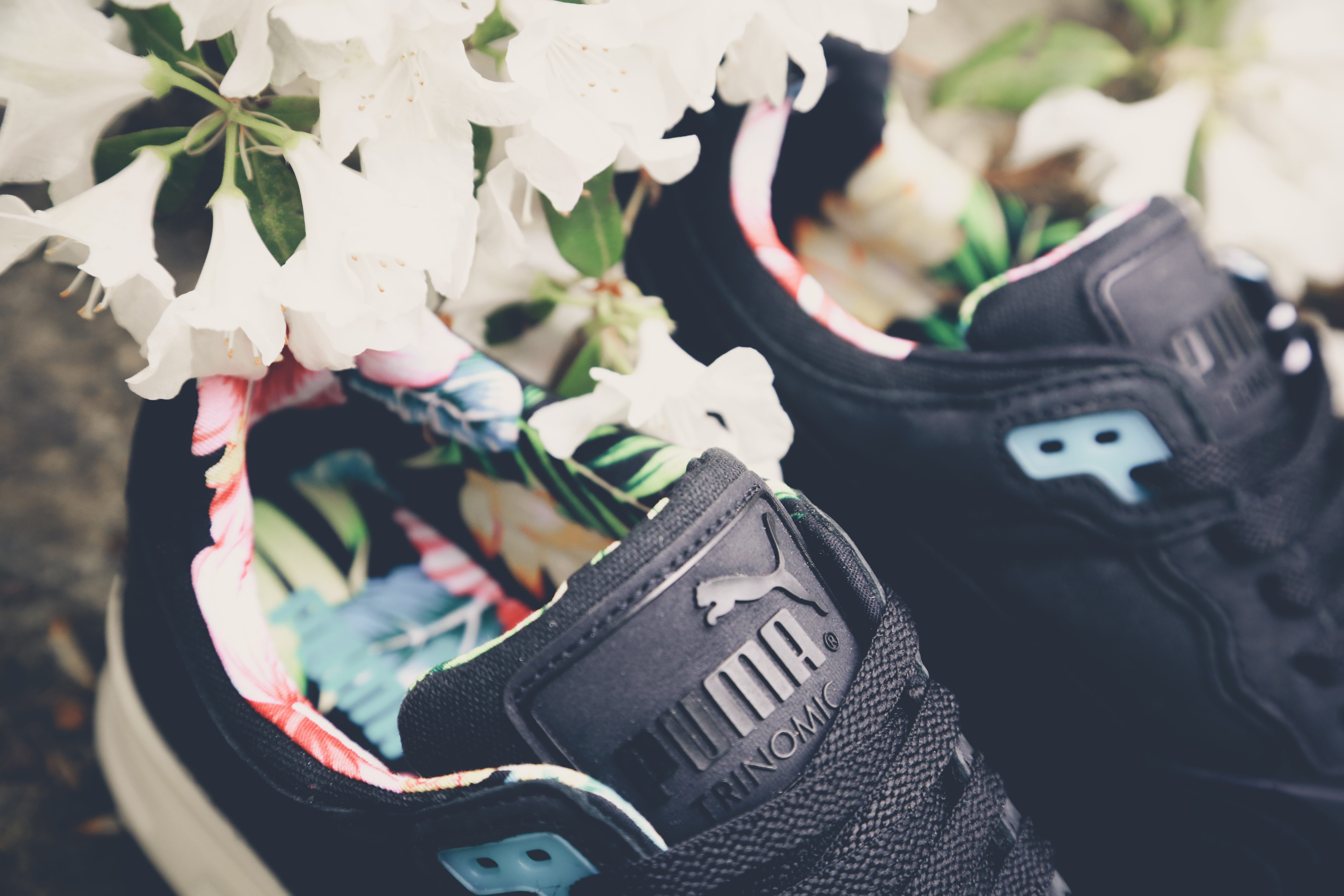 Der R698L und der Trinomic XT2 von Puma sind bei uns eingetroffen. Der “blumige” Faden, der sich durch alle vier Modelle zieht, ist das freshe Tropicalia-Muster des Innenfutters.