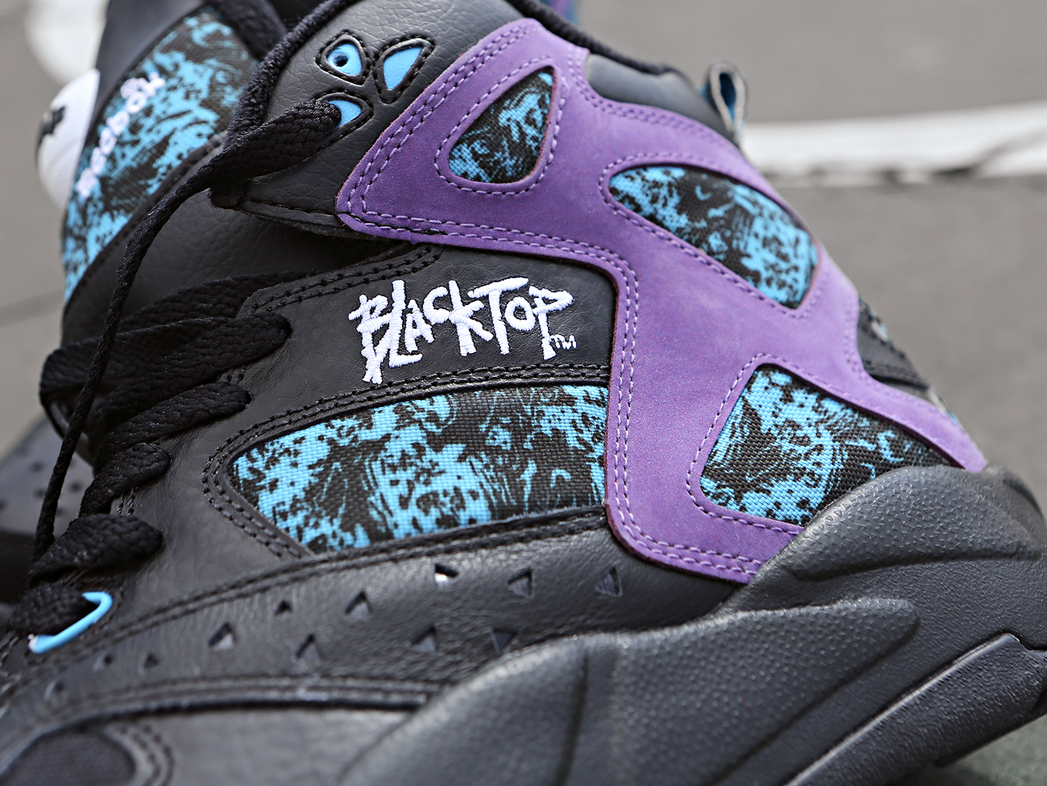 Wer von Euch kann sich noch an die Blacktops von damals erinnern? “Chunky” Hightops mit Splatter-Design und der obligatorischen PUMP-Technologie gehören genauso zum Streetball der 90er wie “Lucky Loser” oder “Slip’nSlide”. Reebok lĂ€sst diese Klassiker 2014 wieder aufleben und bringt den Blacktop zurĂŒck auf die urbanen BasketballplĂ€tze. Gestartet wird mit dem schwarz-lila-blauen Blacktop.