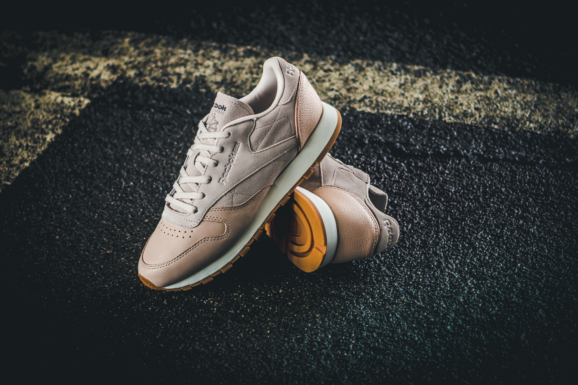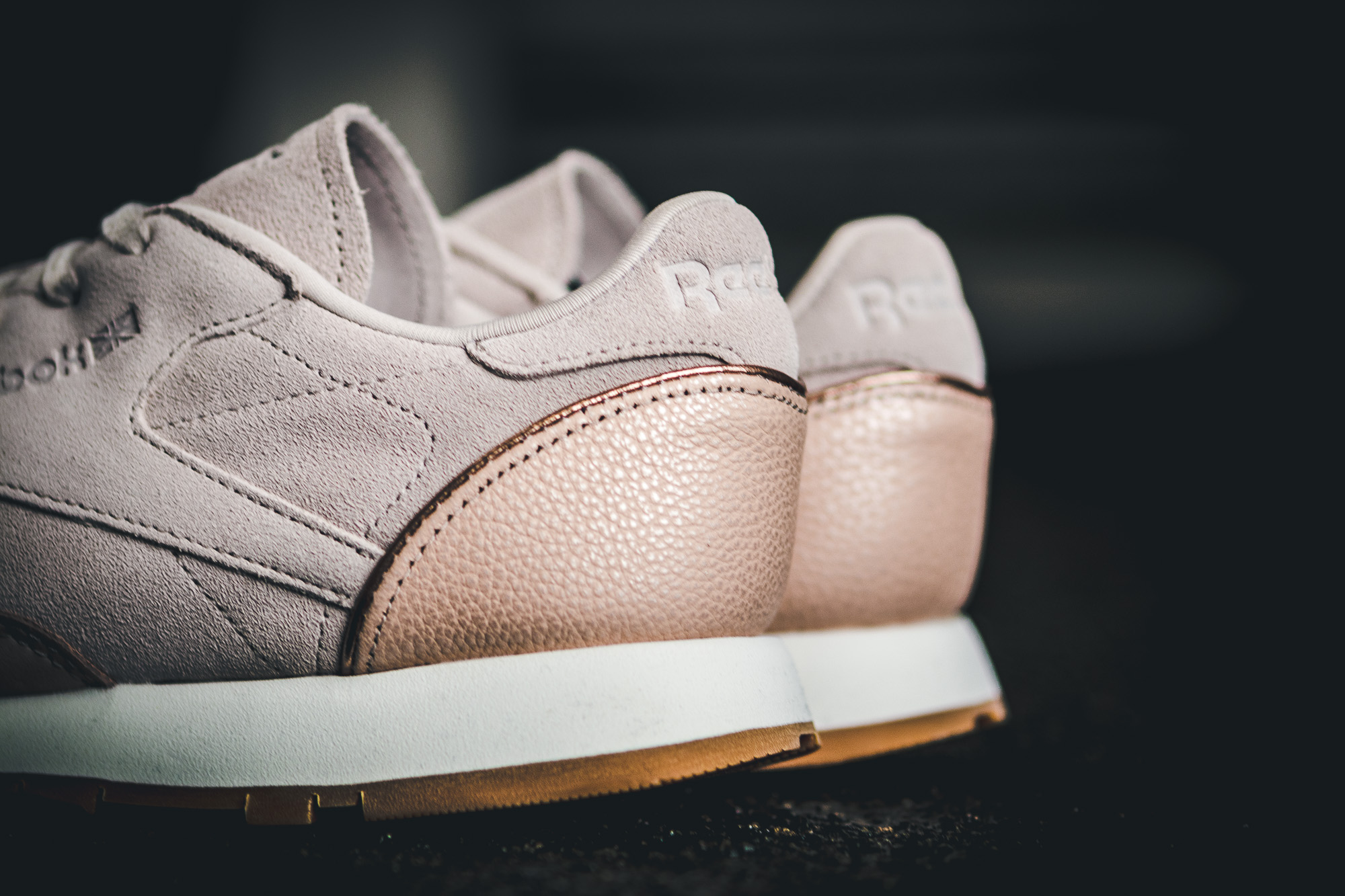 Auf dem weichen Leder-Obermaterial des Classic Leathers harmoniert das Roségold schön mit dem dem dezenten Beige und auch die helle Mittelsohle wurde toll in Szene gesetzt. Gleiches gilt für den Club C 85, bei welchem vor allem die klassische Gum-Sohle hervorsticht. Untermalt wird das Gesamtbild von den feinen Verzierungen und metallischen Elementen.