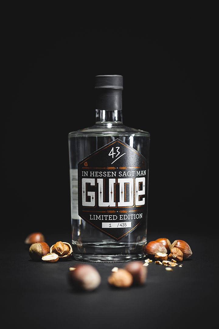Die limitierte GUDE x 43einhalb »In Hessen Sagt Man Gude« Edition besteht aus frisch gerösteten Haselnüssen und feinstem Alkohol und wird es an der Sneakerness zum exklusiven Messepreis von 25,-€ geben.