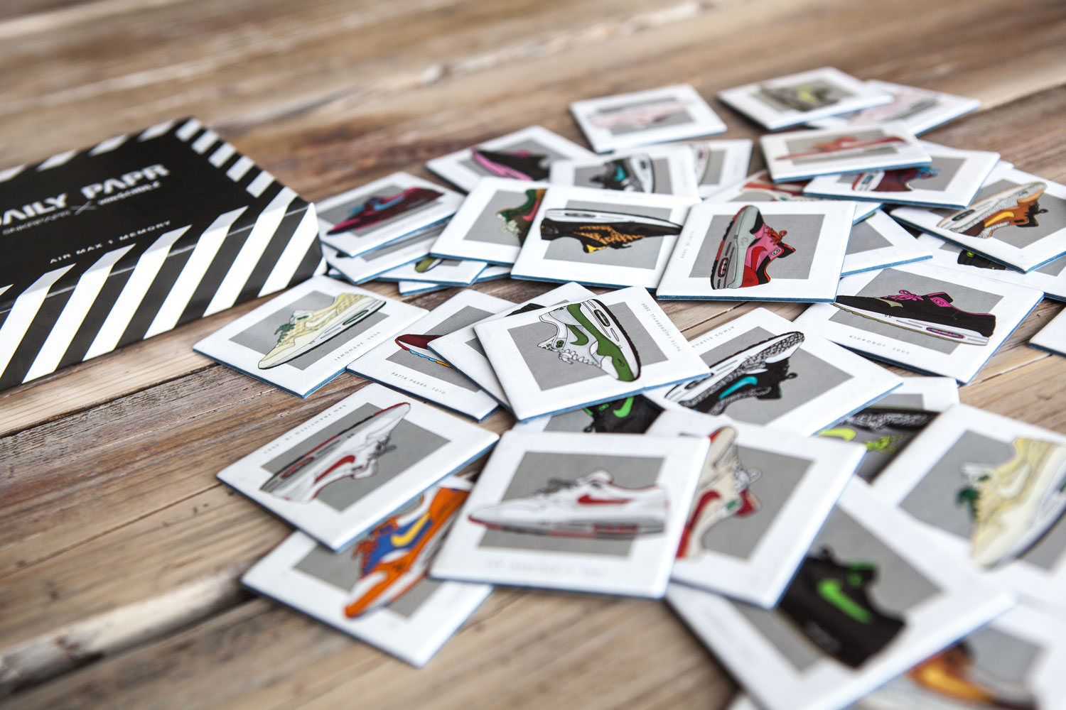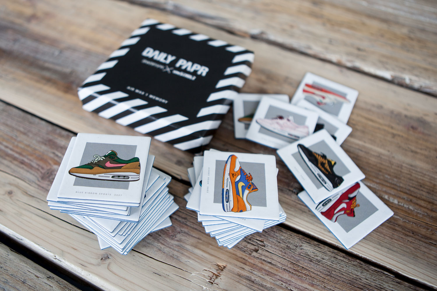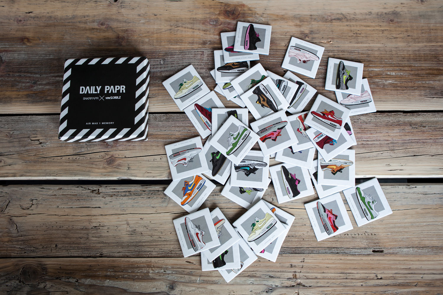 Snkrpapr x VonSchulz sind aufs Ganze gegangen und haben den Kindheits-Klassiker «MEMORY« in einer fancy Sneaker-Version rausgebracht. Egal ob Atoms »Safari« oder Atmos »Elephant«, hier wurden all unsere Lieblings Air Max 1 Modelle verewigt. Neben Bildern sind die Karten zudem mit dem Namen und Erscheinungsjahr des jeweiligen Modells ausgestattet. So kann das Sneaker-Allgemeinwissen gleich mal wieder getestet und aufgefrischt werden.
