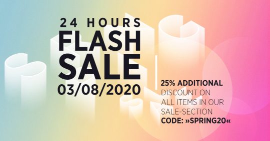 We’re giving 25% additional discount with the code »SPRING20« on all items in our sale section on March 08th 2020 for 24 hours. Up to 65% discount on the original price!