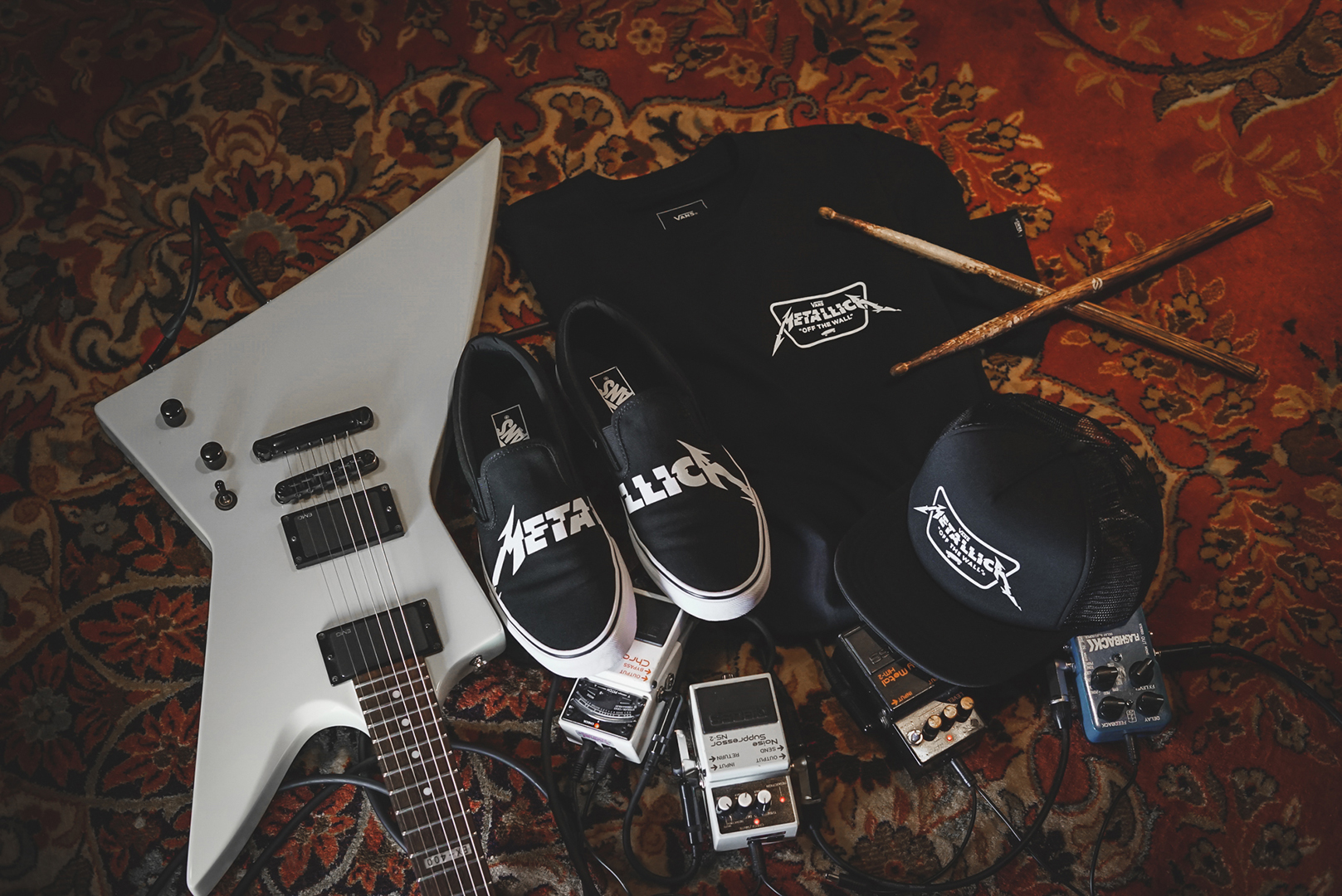 Metallica Bassist Rob Trujillo trägt sowohl auf der Bühne als auch privat fast ausschließlich Vans und ist großer Fan des Kalifornischen Skateboarding Labels. Und seine Liebe wird erwidert. Der Vans-Designer und ehemalige Skate-Profi Steve Caballero ist selbst Musiker und bezeichnet Metallica als seine „all-time favorite band“. Die Begeisterung füreinander ist also groß, da lag ein gemeinsames Projekt nur nahe.