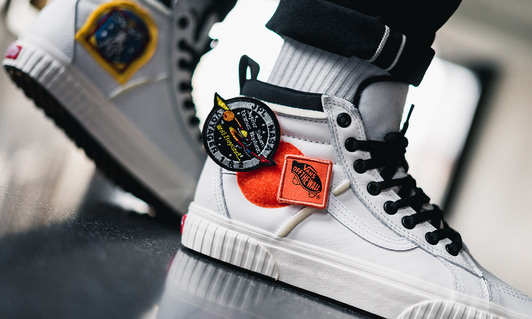 Vans und die NASA haben es hinbekommen, eine komplette Kollektion zu erschaffen, deren Inspirationsquelle nicht zu übersehen ist. Auf Schuhen, Kleidung und Taschen wird das Weltraumthema exzellent umgesetzt und authentisch wiedergegeben. Neben dem Space Shuttle-Motiv und der orangen Träger-Rakete, spielt auch Apollo 11 eine große Rolle: 1969 fand mit Apollo 11 die erste bemannte Weltraummission zum Mond statt, an deren Ende Neil Armstrong als erster Mensch den Mond betrat! Bei den Schuhen gibt es je zwei Varianten des Old School sowie zwei Colorways vom SK8 HI MTE, dazu kommen zwei Jacken, ein Rucksack sowie eine orange Duffle Bag!