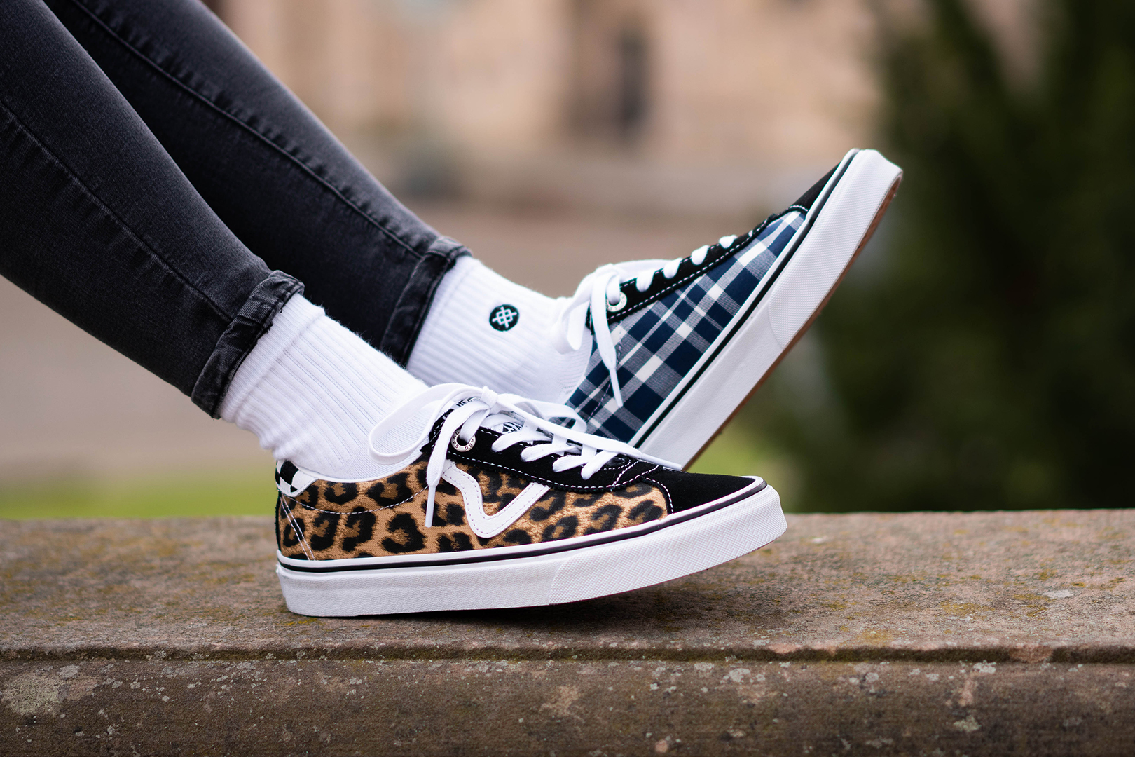 Den Vans x Sandy Liang Sport ziert ein raffiniertes Design auf dem Upper: Auf der einen Seite finden wir ein Schotten-Muster, während die andere Seite in aufregenden Leo-Prints erstrahlt! Vollendet wird der Muster-Mix durch Vans traditionelles Checkerboard-Muster an der Ferse. Die Footwear-Reihe wird durch ein zweites Old Skool Modell komplettiert, für das sich Sandy von L.E.S. inspirieren ließ. So stattete sie das Upper mit einer schwarzen Canvas-Base aus, welche durch weiße Nähte unterbrochen wird. Blickfang sind hier die Schmetterlinge am hinteren Teil der Sohle und ein customized Stitching auf dem Heel.