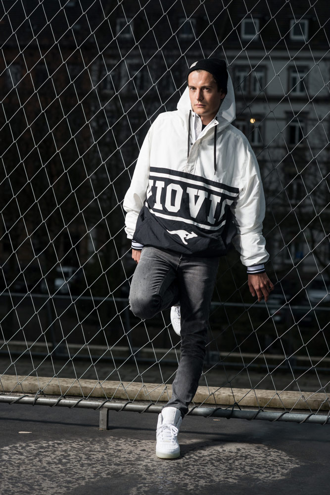 Diesen Samstag ist es endlich soweit: Die Black & White Kollektion von VIOVIO und KangaROOs RedandBlack geht diesen Samstag ab dem 15.02.2014 an den Start. VIOVIO ursprĂŒnglich von Carlo Waibel (a.k.a. âCRO) und seiner Schwester 2008 in Stuggi gegrĂŒntdet mischt schon lĂ€nger im deutschen Apparel Biz mit. Die Connection zu KangaROOs kam dann ĂŒber Bernhard Glimm vom Shemonster Vintage Store Mannheim zustande (GruĂ an Bernie von Mischa!) und die Chemie zwischen beiden Partnern stimmte sofort. Dabei herauskam eine fĂŒnf Unisex Styles Kollektion mit Glow-in-the-Dark Details und Wendewindbreaker, insgesamt bestehend aus Beanie, Gym-Bag,