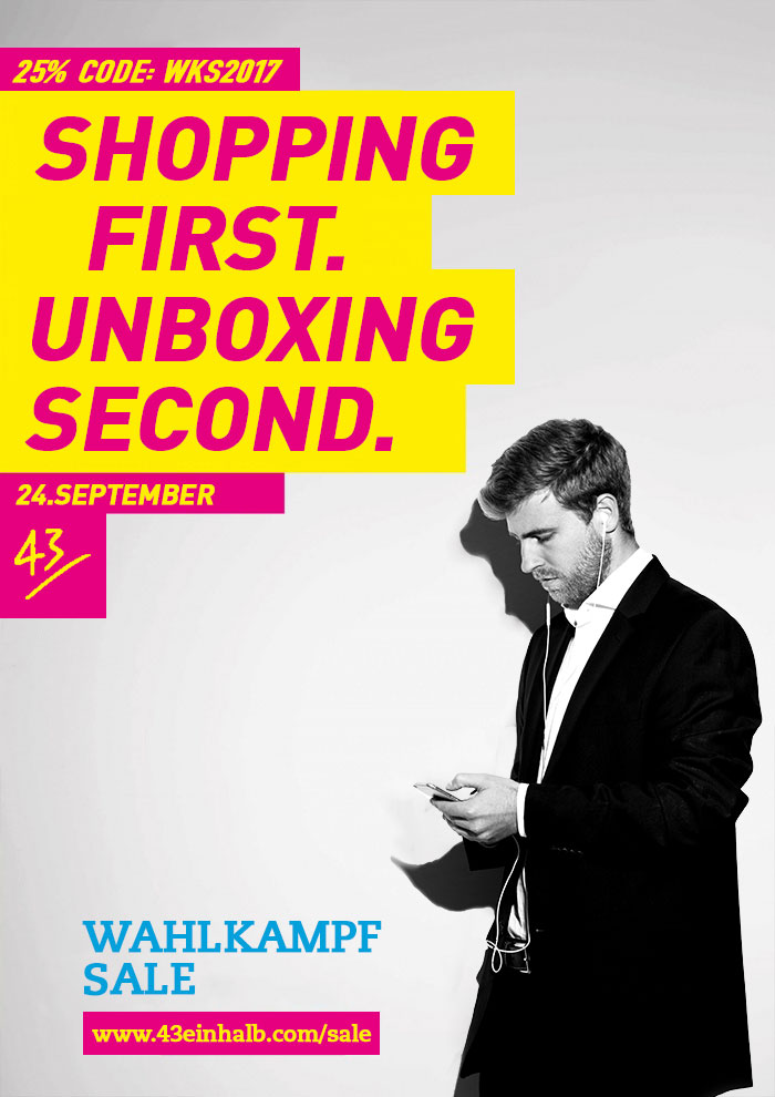 [ENGLISH TRANSLATION] The federal election in Germany will be taking place on September 24th. That’s a very important day for our democracy. If you’re allowed to vote, please use your voice and go to the polls. Not voting is not an option.This is without a doubt the most important decision for German citizens on Sunday, but it’s not the only one. 43einhalb created its own election manifesto and we’re aiming for 25%. On Sunday we give additional discount on all products in our sale section. That means up to 70% on the original price. Use the discount code »WKS2017« during checkout and you will make the right choice. Because there is one thing that all our four »lead candidates« can agree on: Keen sneakers for everybody!