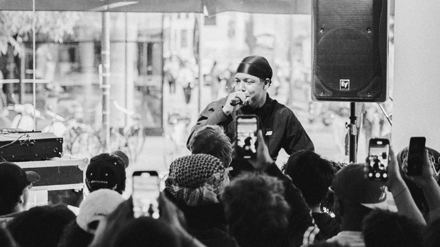 To bring this idea to life, we spent a day with our friend and German rapper JOVAN. No staged drama, no flashy sets—just a real look at how he moves through his world. From kicking a ball around with friends, to walking through the park, laying down tracks in the studio, and ending the day with a stripped-back show at our Frankfurt store. No filters needed.